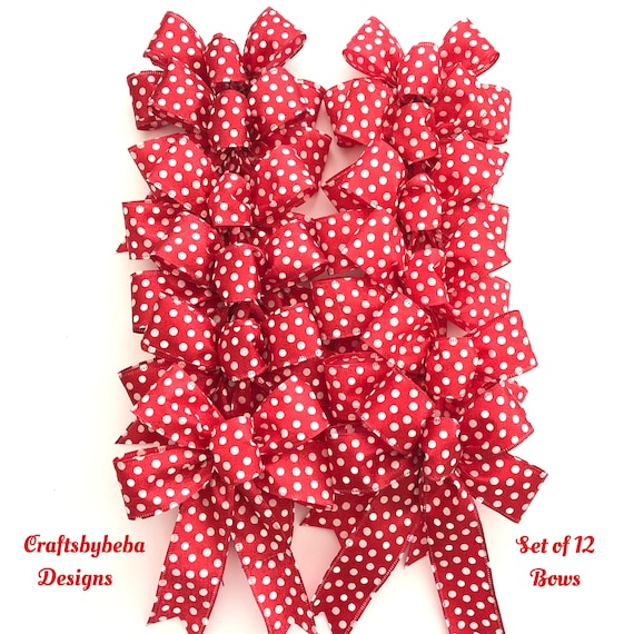 Red And White Decorative Bows Set Of 12 Bows Christmas Red Etsy