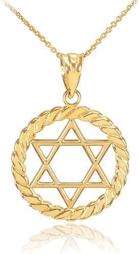 Amazon Com 14k Yellow Gold Jewish Star Of David In Circle Rope