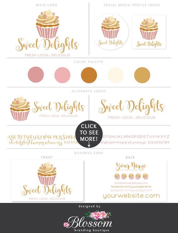 Cupcake Premade Logo Branding Kit 3 Logos Business Card Etsy