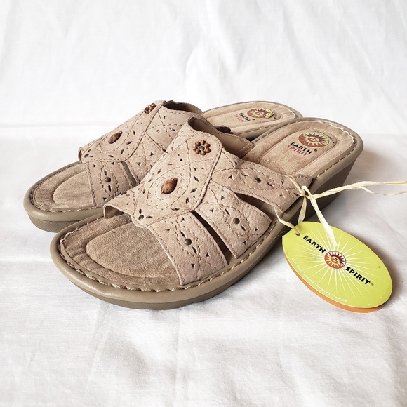 Earth Spirit Shoes Tan Leather Comfortable Wedge Monica Sandals