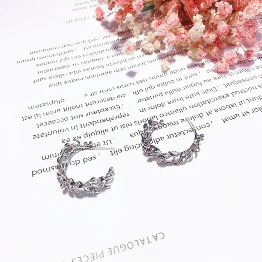 Korean Handmade Designer Autumn And Winter New Metal Leaf Half