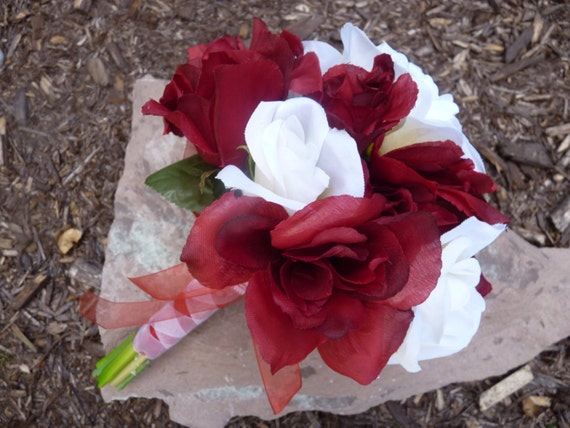 Clearance Red White Rose Bouquet Winter Bouquet Etsy