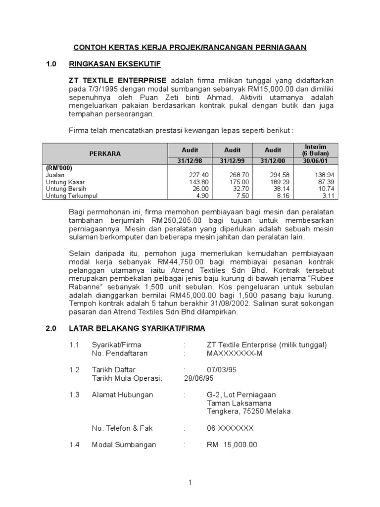 Contoh Project Paper Kedai Jahit Amend Doc Document