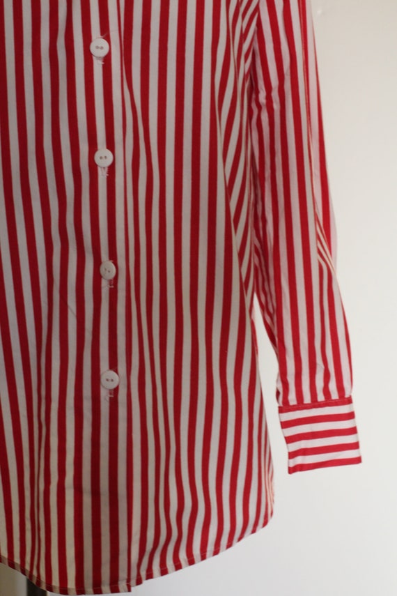 80s Bold Red And White Vertical Striped Long Sleeve Blouse Etsy