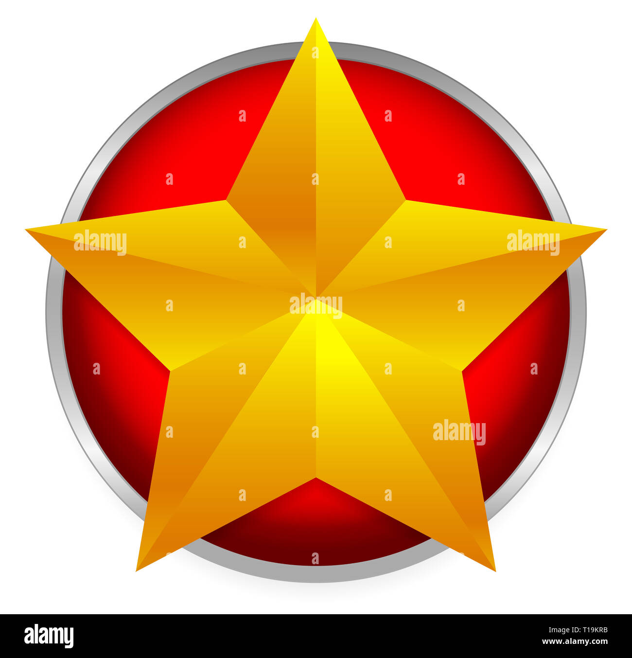 Golden Star Emblem Beveled Gold Star On Bright Red Circle Stock