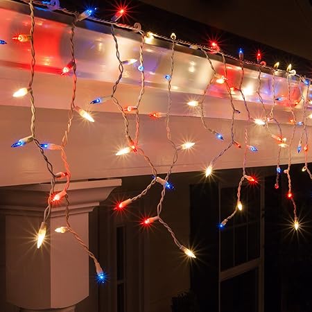 Amazon Com 70 5mm Led Red And Cool White Icicle Lights 7 On