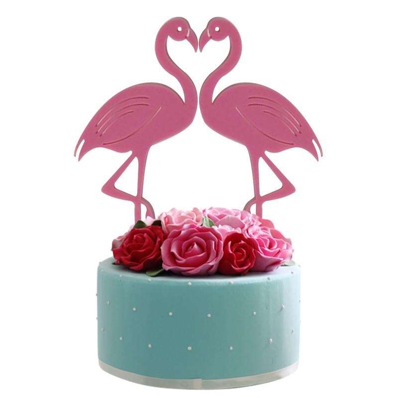 2 Pcs Acrylic Flamingos Cake Topper Insert Card Birthday Wedding